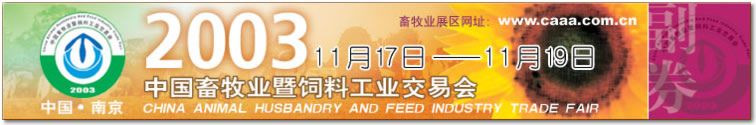 滚动信息:   南京盛会胜利闭幕 11-19 20:09  2003中国畜牧业暨饲料工业交易会正式拉开帷幕 11-17 13:31  参会布展已进入第二天,交易会将于明日开幕 11-16 23:14  交易会直播网现在开始征稿 11-13 11:34  南京交易会主要负责人已于今日早上奔赴南京 11-13 11:07