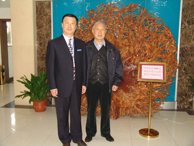 猪业分会荆继忠秘书长(右)与西班牙海博莱生物大药厂股份公司北京代表处首席代表秦云(左)合影