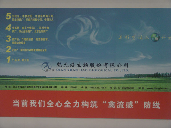 乾元浩生物股份有限公司(以下简称“乾元浩” )由中牧实业股份有限公司、中监所北京海淀中海动物保健科技公司、云南省保山疫苗厂、北京乐道兴创业投资有限公司和中国农业大学等五家国内从事生物制品的生产、科研与投资的骨干单位联合发起设立,于2004年7月在国家工商行政管理总局注册,注册资金1.28亿元。公司主要以畜牧业为依托,从事动物生物制品及诊断试剂的生产、销售、研发、技术服务、项目投资以及国际贸易。