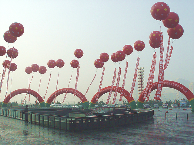 在展馆前宽阔的广场上,彩虹门上空飘舞着喜庆的红色气球。各大企业祝贺大会成功的贺语随风飘扬。展示企业风采,树立品牌形象,已经成为参展企业不可错过的机会。此次在馆前广场亮相的企业如下:
