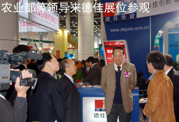 展会开始后,参加开幕式的各位领导来到德佳展位进行参观,范学斌总经理为他们简单介绍了公司的发展愿景和本次展会展位设计的初衷。全国畜牧总站副站长陈伟生来到德佳展位,对德佳的发展给予了肯定,也对德佳展位设计的大气和展位规模给予了高度评价。