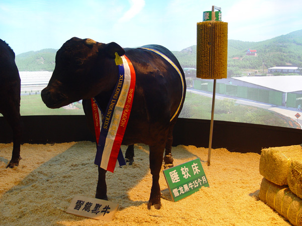 饲养中的雪龙黑牛听音乐、喝啤酒、喂熟食,饮温水、睡软床,在极其完善的生态环境中培育成长。根据已屠宰的肉牛质量检测结果表明:其产品完全可以与日本“顶级牛肉”相媲美。“雪龙黑牛”具有极强的脂肪沉积基因,雪白的脂肪均匀有致分布在桃红色的瘦肉中,入口即溶、甜嫩无比、回味无穷、是我国牛肉中的极品。