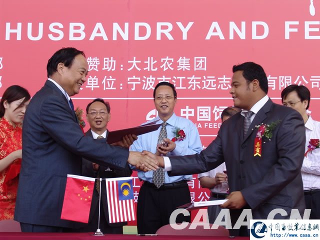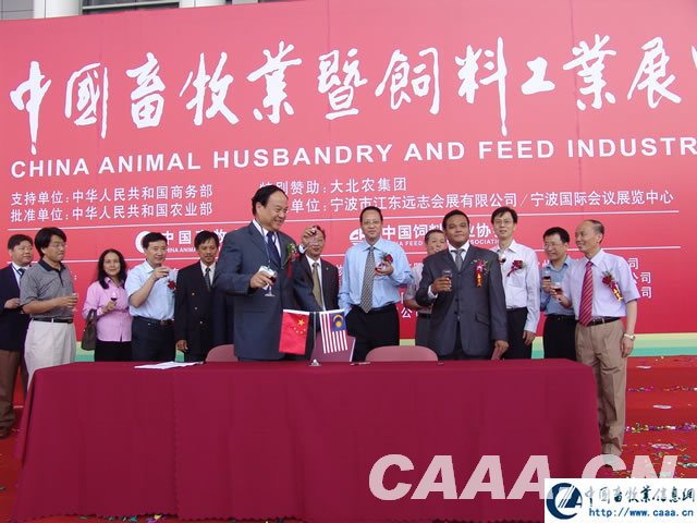 5月19日上午,在2007年中国畜牧业协会暨饲料工业展览会隆重开幕之后,湖南加华生物科技发展有限公司和马来西亚Alon公司签署了主要内容为6000头活牛订单的合作协议。农业部副部长张宝文、全国畜牧总站站长谷继承、马来西亚农业代表团代表出席了签约仪式。湖南加华生物科技发展有限公司总裁刘福堂和马来西亚农业发展部主席在协议书上签字。