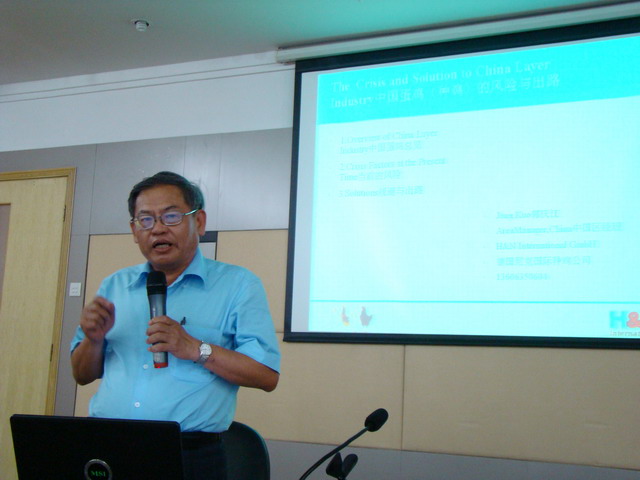 由中国畜牧业协会禽业分会常务理事单位中德合资山东爱佳畜禽有限公司组织的“中国蛋鸡(种鸡)的风险与出路”论坛在西安曲江国际会展中心举行。会议由中德合资山东爱佳畜禽有限公司经理孙习智主持,德国尼克国际种鸡公司中国区经理郭庆江做了题为“中国蛋鸡(种鸡)的风险与出路”的报告。就我国目前蛋鸡生产中存在的问题与未来如何更好的发展进行专业的分析与探讨。