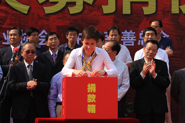 全国畜牧总站书记何新天在中国畜牧饲料行业抗震救灾募捐仪式上捐款 国家动物疾病控制中心副主任李明在中国畜牧饲料行业抗震救灾募捐仪式上捐款 国际友人德国农业协会施敏迪女士在中国畜牧饲料行业抗震救灾募捐仪式上捐款