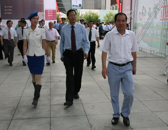 张宝文副部长在陕西畜牧局局长陪同下步入陕西馆