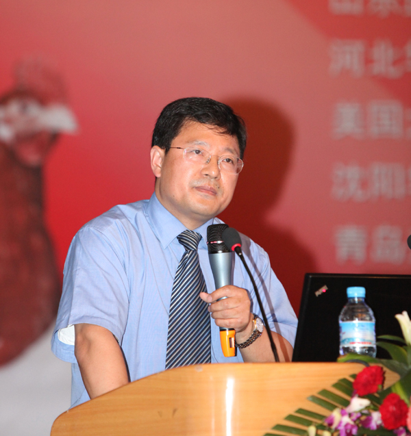 青岛易邦生物工程有限公司总经理杜元钊在蛋鸡大会上做题为《高致病性禽流感的控制》的报告。 杜元钊,生于1965年12月,山东省荣成市人,全国著名禽病防治专家、研究员。现任青岛易邦生物工程有限公司总经理,兼任中国畜牧业协会禽业分会副会长。杜元钊同志长期从事我国禽病流行病学、疾病诊断与防治和科研技术开发等方面的研究工作,取得显著学术成就。先后主持农业部八五、九五畜牧业重点攻关项目2项,参加948引进项目2项,主持研究及参与制订各种禽类疾病诊断技术标准8项;开发研制疫苗及诊断试剂产品20多种,药物3种,获得7个产品的新兽药证书;获得省部级一、三等奖各一个;公开发表论文40多篇,其中优秀论文8篇;参与编写专业书籍4本。在进行理论研究的同时,能够积极地将禽病学理论应用到实践中去,经常深入养殖一线,分析了解禽病流行情况并为鸡场提供解决禽病防治方面的关键技术,积蓄大量临床经验。同时通过办培训班,现场技术服务等各种形式培养技术人员近千人,编写以用户需求为主的杂志,禽、水禽、猪病防治手册达10多种,发行20多万册,为我国畜牧业行业的发展做出了突出贡献。