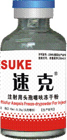 【兽药名称】商品名:速克 通用名:注射用头孢噻呋冻干粉