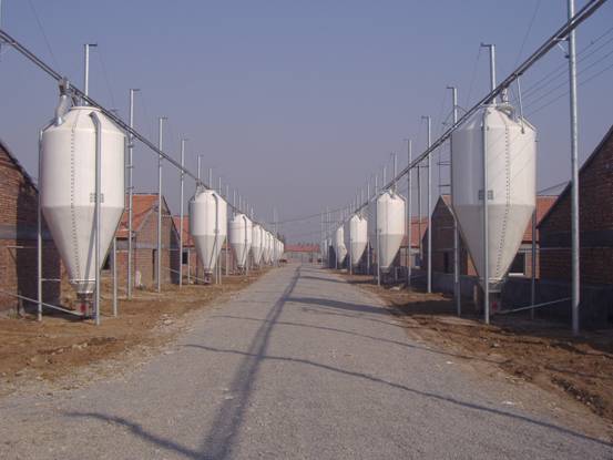 包括:优质玻璃钢料塔,电脑称重系统,畜禽舍饲料自动输送系统,厂区饲料输送系统,散装饲料罐车以及移动式厂区提升料车等。