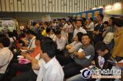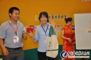 中国饲料日接待台填写抽奖券、领取饲料日通行证的观众络绎不绝