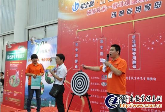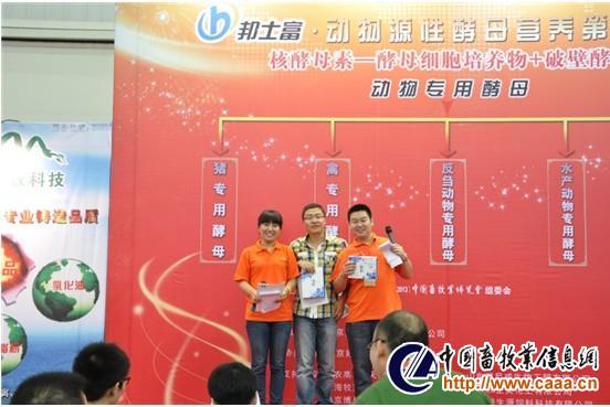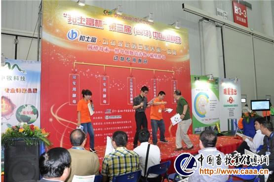 “邦士富杯 ”第三届(2013年)中国饲料日开幕式结束后,活动进入互动环节。值得一提的是,本届饲料日礼品丰厚,不仅有毛绒玩具、雨伞、笔记本、无线鼠标、炭雕等,还有赞助企业提供的饲料类奖品,如蒙脱石、胃动力、酵母素等,累计金额高达10万元,吸引了众多的观众前来参与,将活动推向高潮!