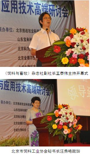大会由《饲料与畜牧》杂志社王泰伟副社长主持开幕式,北京市饲料工业协会秘书长汪秀艳莅临大会并致开幕辞;出席开幕式的领导有:生物饲料开发国家工程中心副主任陈桂林、北京市饲料工业协会副秘书长程宏典、沈阳农业大学知名养猪专家边连全教授、农业部生物饲料重点开放实验室朱杰研究员、台湾全能公司市场总监张信政、全能公司技术顾问傅世雄、全能生物科技(天津)有限公司副总经理兼技术总监石枬弘、北京挑战牧业科技股份有限公司总经理卢红卫、山东宝来利来生物工程股份有限公司副总裁盛永杰、山东宝来利来生物研究院院长谷巍博士、北京金娜尔生物技术有限公司技术总监余平良博士、北京科为博生物公司总经理吴培均、北京科为博生物科技公司动保事业部总经理杨忠广。