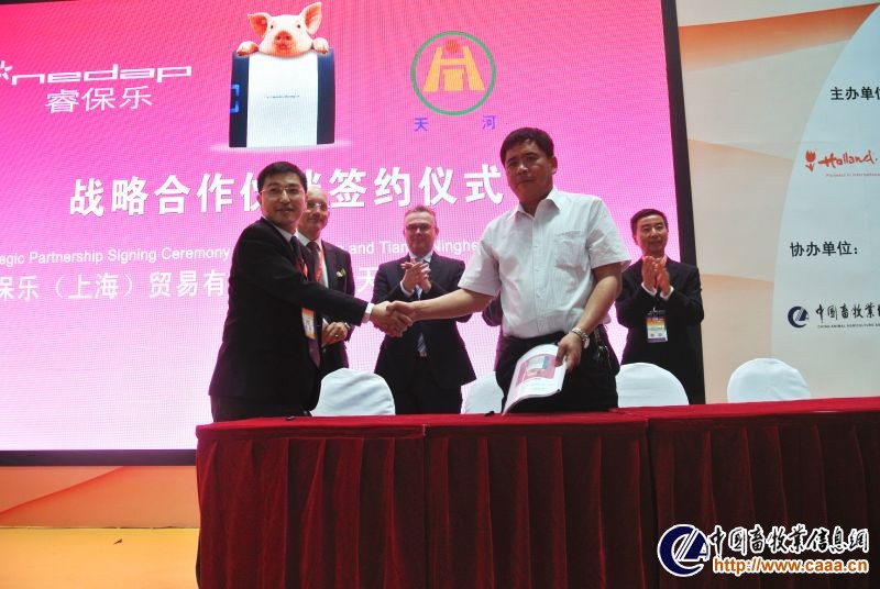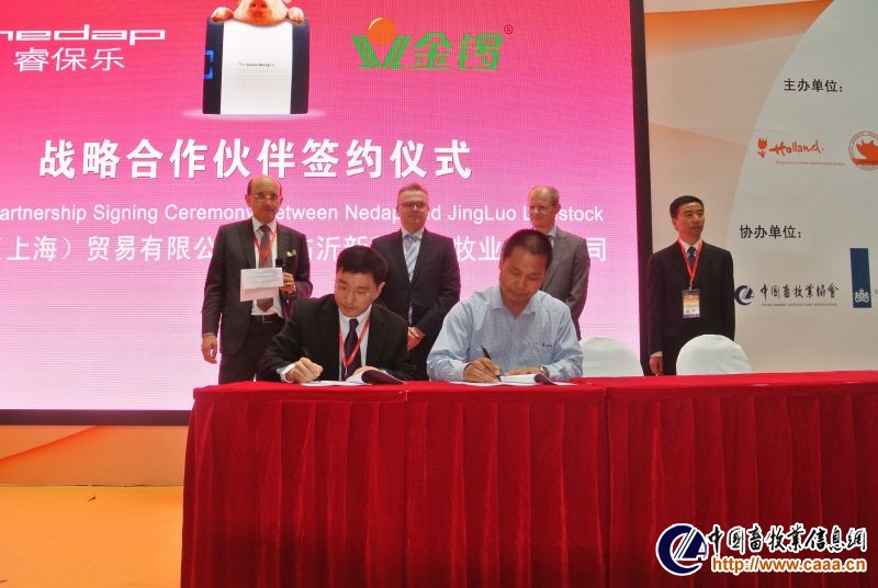 荷兰企业仪式期间,Nedap中国(睿保乐)率先与天津市宁河源种猪场及临沂新程金锣牧业有限公司签订战略合作伙伴协议,为此次仪式的成功举办奠定了良好的基础。随后在《肉鸡的信号》中文版发布仪式上,本书作者Maarten De Guseem博士向何新天秘书长赠送水晶模型以及对于中文版发行的问候与祝福。最后,泰高中国为观众们带来了一场精彩的新品推介会,为首日的企业仪式画下了圆满的句号。
