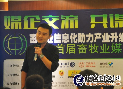 另外,在首届畜牧业媒企业交流会上,各大畜牧行业主流媒体百家争鸣,各自提出了对畜牧业信息化的精彩观点与期望:来自搜猪网的冯永辉董事长分享了养猪业信息化的核心产品模型--中国生猪预警系统建设的初衷与建设思路,高屋建瓴的阐述了数据统计与分析的重要性,并呼吁各大媒体,联合起来发挥各自优势,共同服务企业,以推动行业发展。
