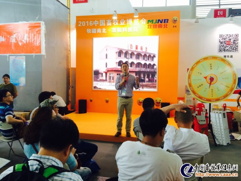 E1馆内兴泰台湾风味香肠飘香四溢、有奖问答热火朝天,微信万步健走活动和抢红包活动更是赢来了观众的积极参与,活动主办方准备了赶猪器、氨克、小推车、塑钢注射器等奖品奖励给参与有奖问答的观众。观众表示这种方式既让他们掌握了知识又有所收获,所以参与的积极性也特别的高。