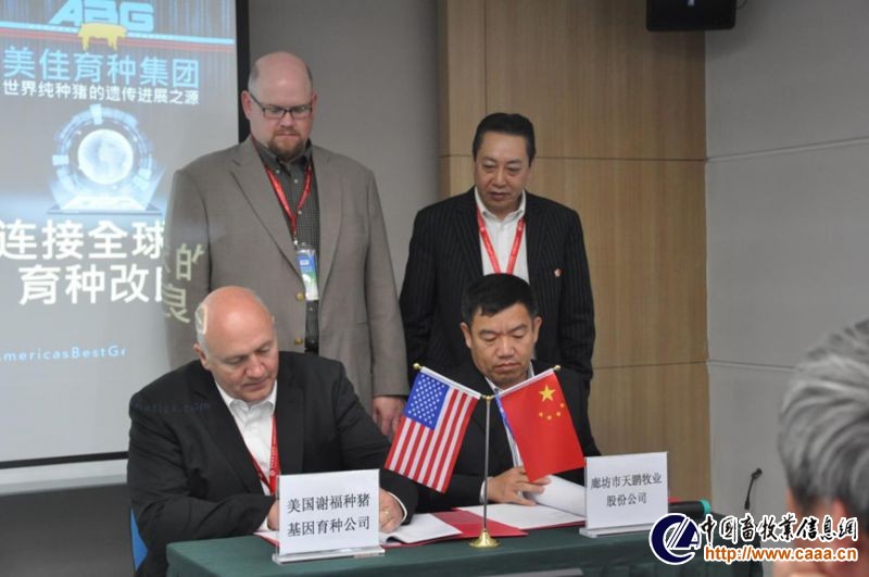 在仪式的最后一个环节中,王琪总经理代表廊坊天鹏牧业有限公司与美国谢福种猪基因公司,就NSR同步育种项目签署了合作协议,标志着又一个全新的美系猪育种项目将在中国建立起来,NSR的大家庭也会在不远的将来迎来这家新的成员。