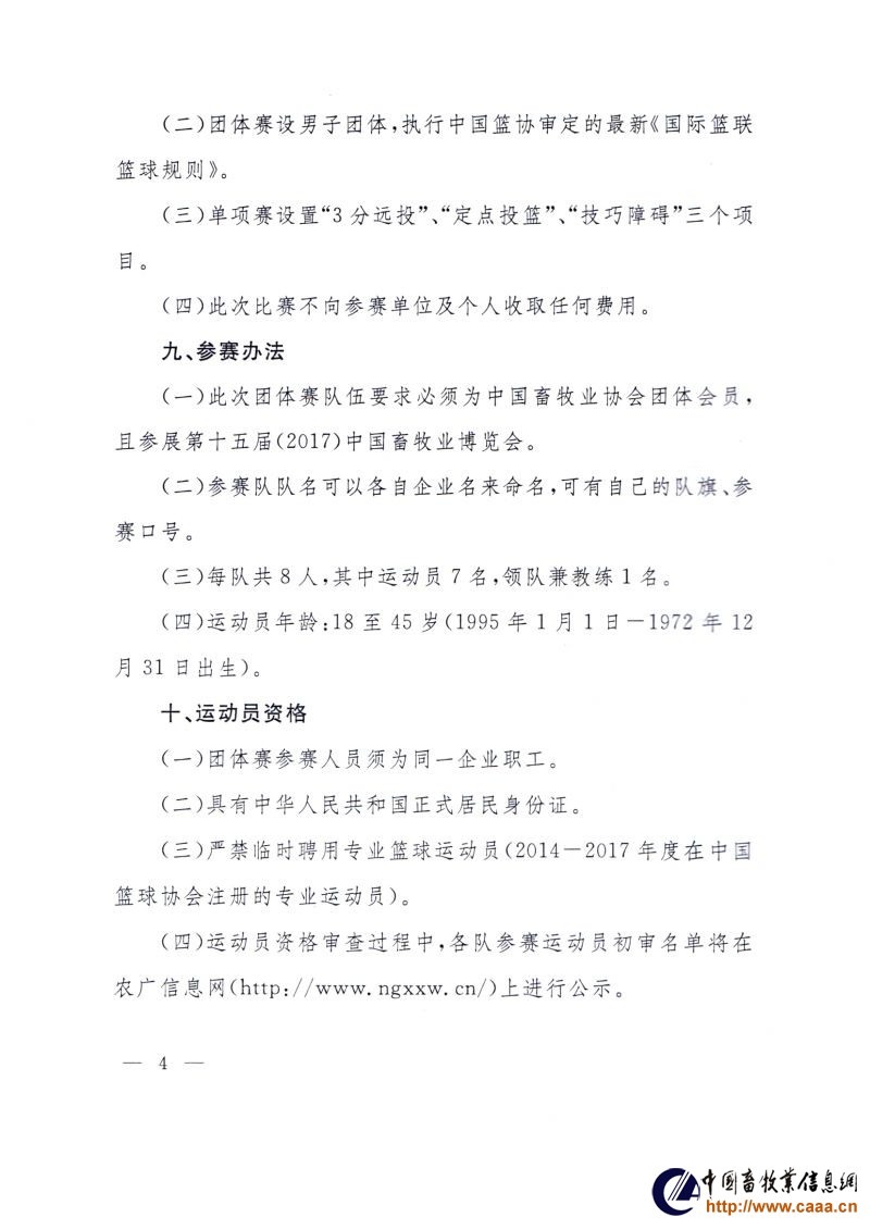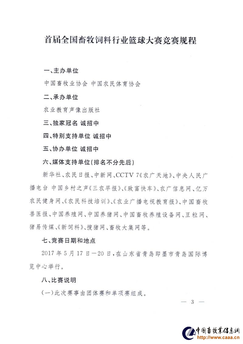 首届全国畜牧饲料行业篮球及乒乓球大赛规程——篮球