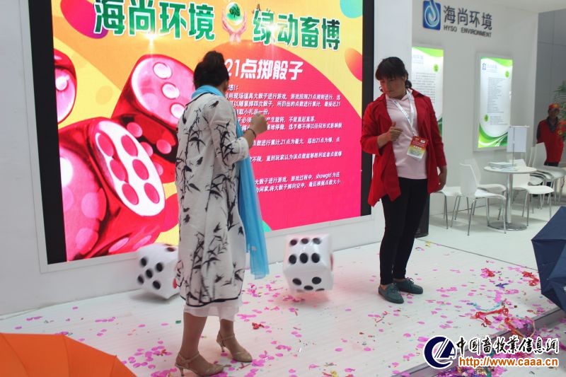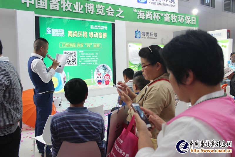 仪式最后,何新天秘书长宣布活动正式启动。随后,在2017畜博会之“海尚杯”畜牧环保日活动展位现场,赛尔传媒联合海尚环境开展了21点掷骰子、海尚环境知识大讲堂、扫码有礼环保“袋”回家、绿色心愿浇灌幸福树、我用方言为海尚代言、脸吃饼干等多种趣味活动,为观展用户送出拉杆车、保温杯、抽带式环保袋、手机支架、钥匙扣、LED台灯、笔记本等礼品,期间源源不断的朋友加入其中,共同用这一抹海尚“绿”嗨翻畜博会,绿动畜博,绿动你我!