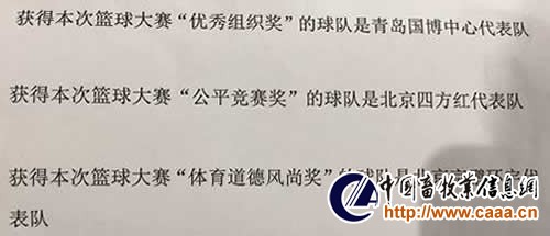 图为篮球大赛获奖结果