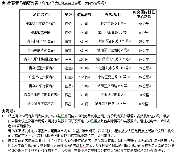 (1)议参展商选择推荐酒店服务商,他们会安排免费大巴车服务。