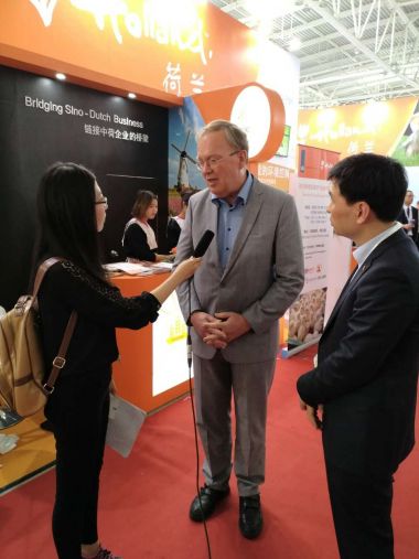 《中国畜牧兽医报》记者王眉宇采访荷兰展团,荷兰驻华大使馆农业参赞郝马丁先生接受采访