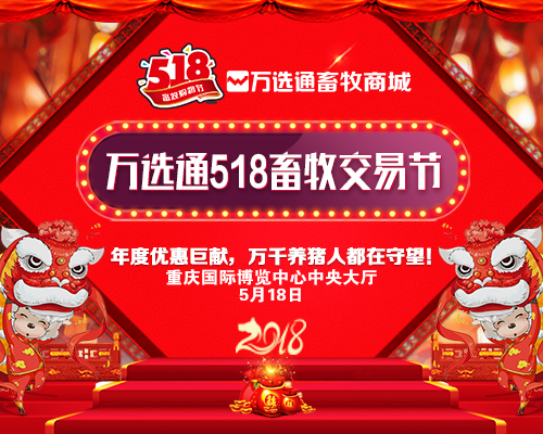 万选通518畜牧交易节将于2018年5月18日在第十六届中国畜牧业博览会上启幕。届时万选通畜牧商城将携手100多家知名兽药、饲料、育种、养殖设备企业,为全国养殖户带来2018年最大优惠力度的名优产品。打破行业固有的采购交易模式,中小型养殖场将搭上移动互联网的快车,“小批量享受低价采购”成为可能。
