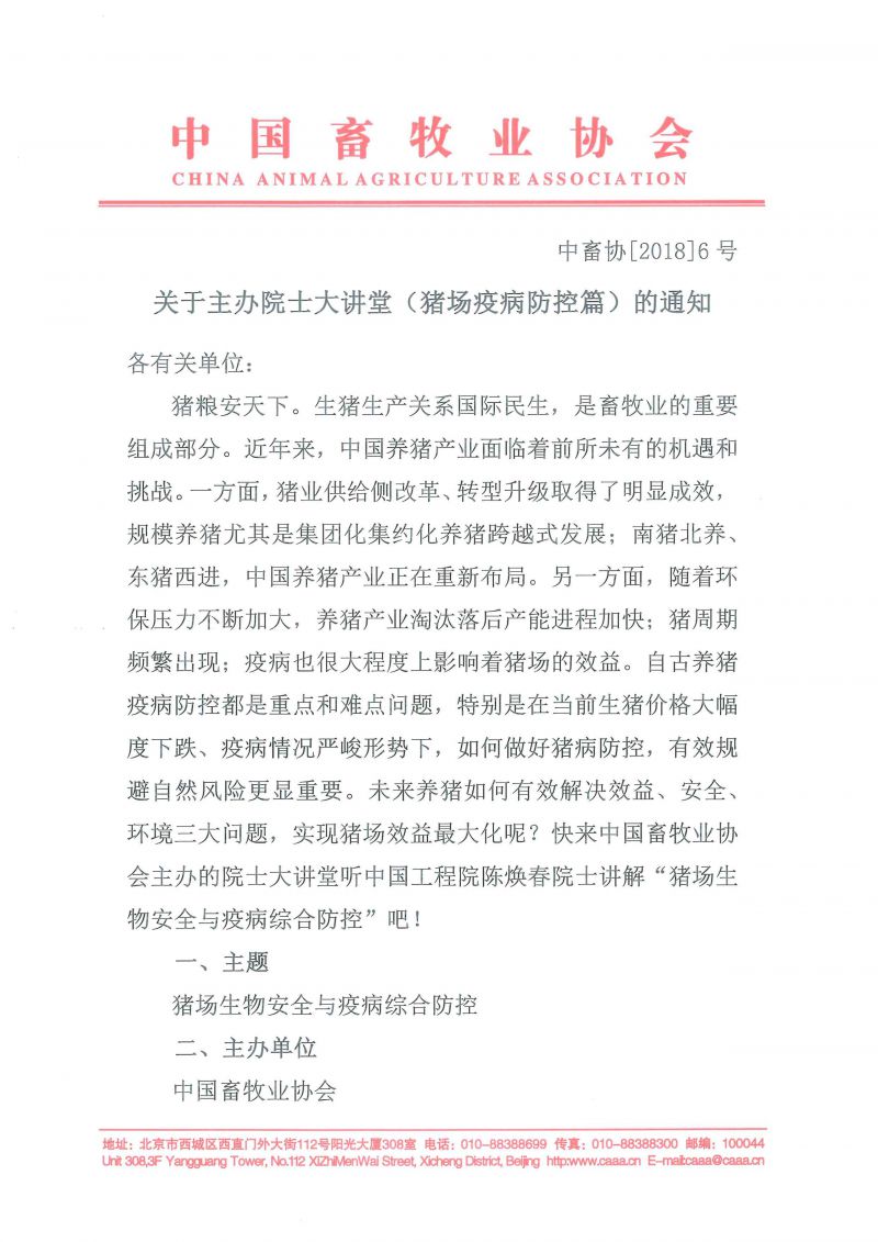 关于主办院士大讲堂(猪场疫病防控篇)的通知