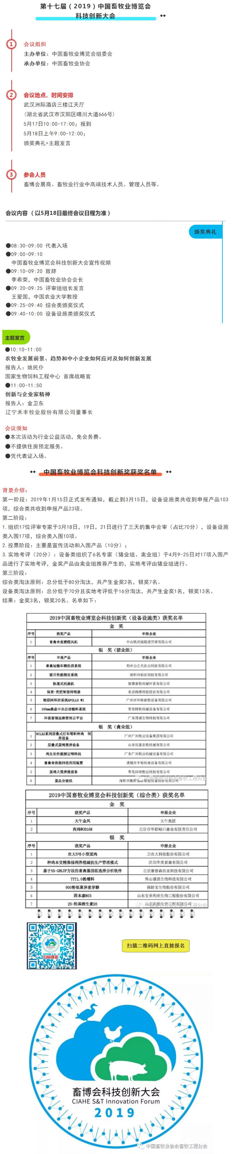 第十七届(2019)中国畜牧业博览会科技创新大会日程暨创新奖获奖名单