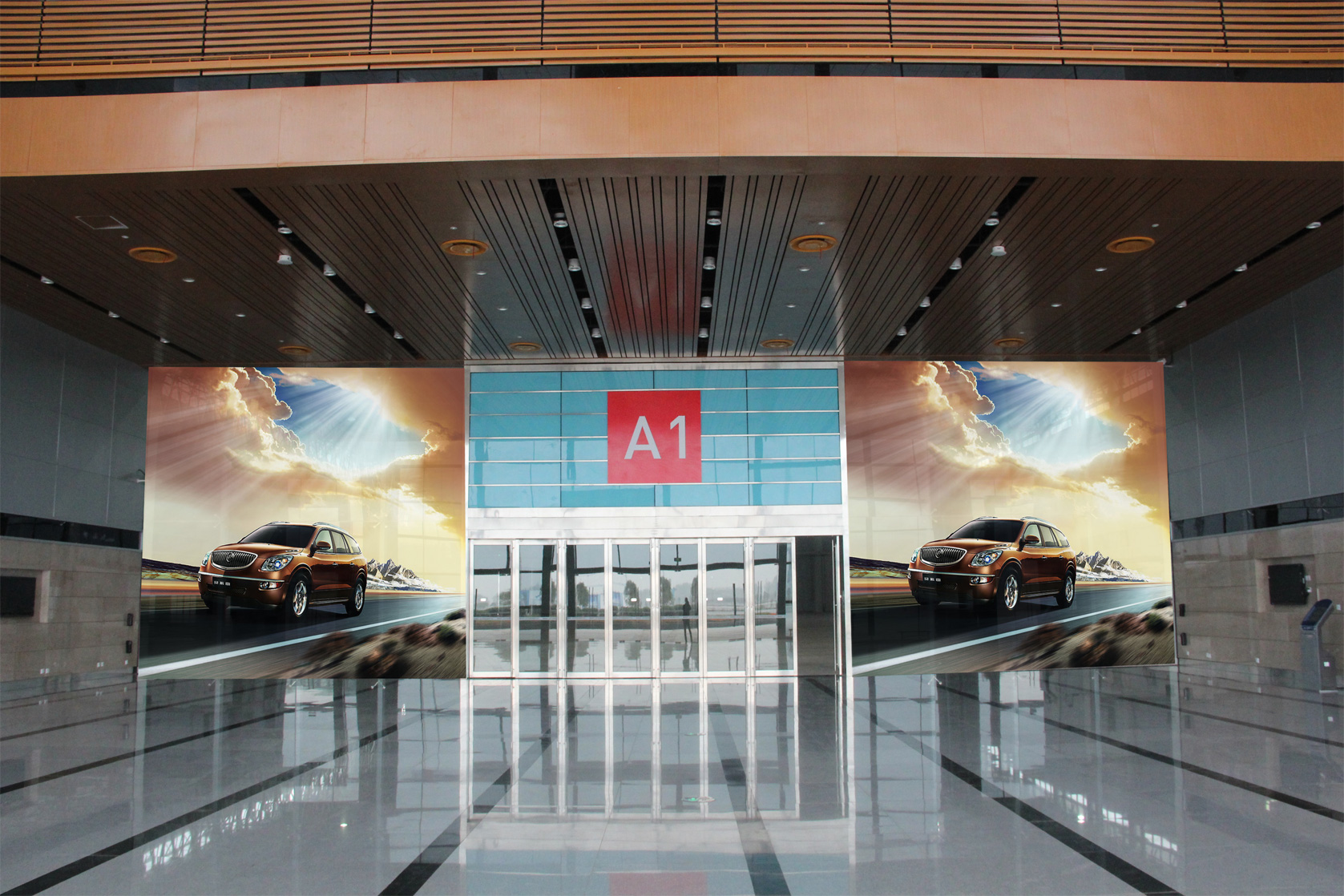 展馆正门厅玻璃墙广告 |