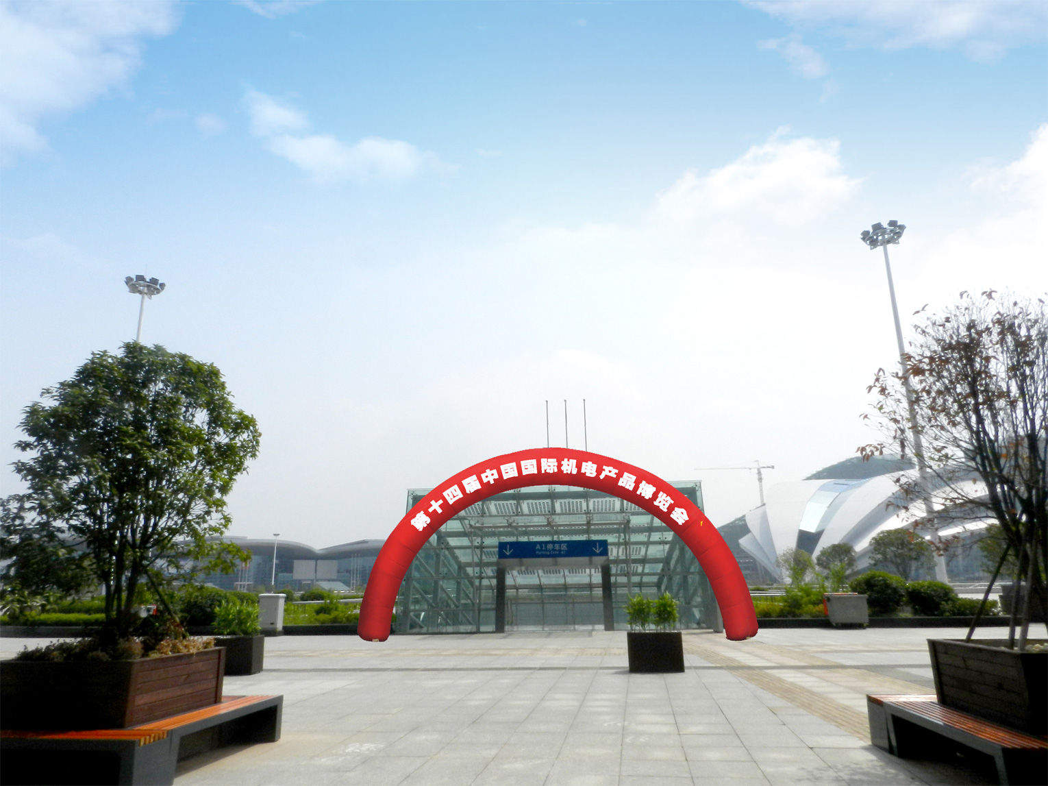展馆主入口坡道上方墙体广告 |