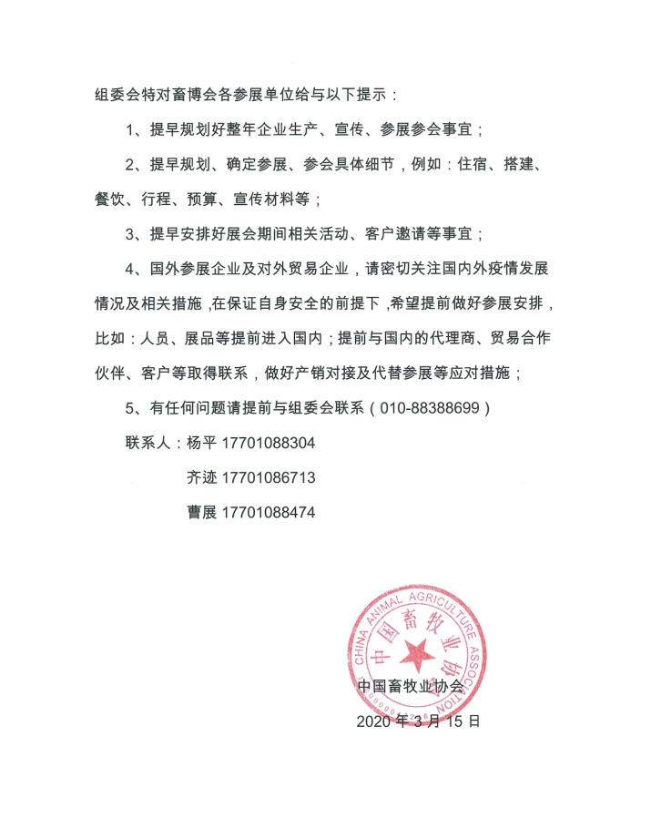 Comfort Prompt of The 18th (2020) China Animal Husbandry Expo and the 2020 China International Animal Husbandry Expo