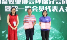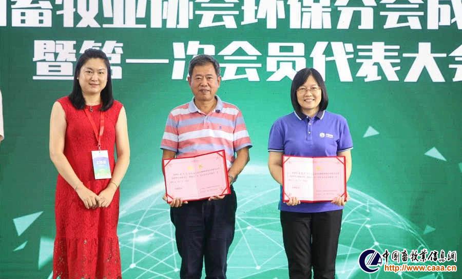 中国畜牧业协会环保分会一届理事会秘书处成员 刘杨(左一)、林代炎(左二)、霍艳军(左三)