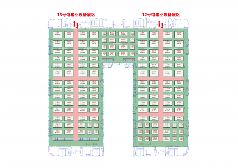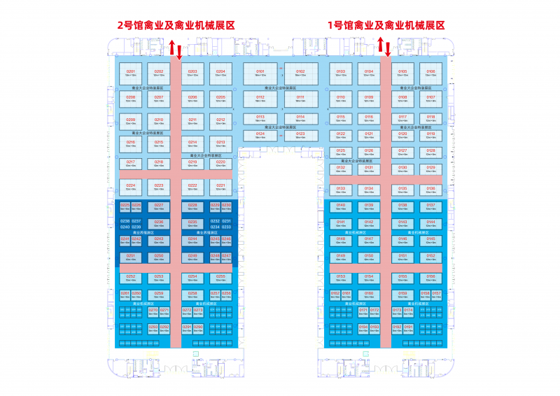展馆分为两层和室外展场,室外展场包括室外大棚(环保、猪业展区)和室外光地(室外环保展区,起订72平起,需提前联系组委会)。