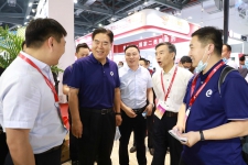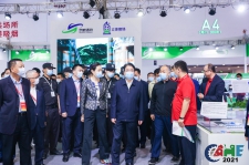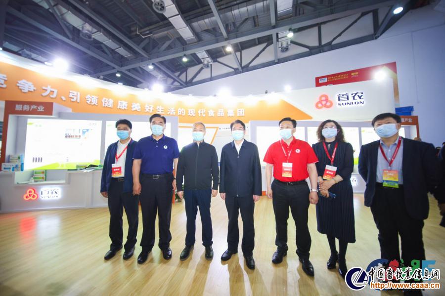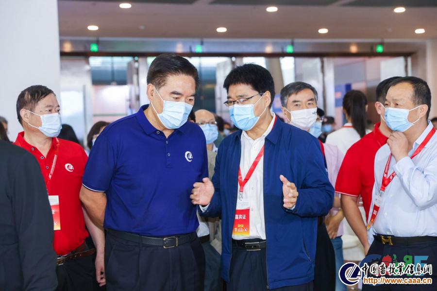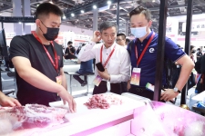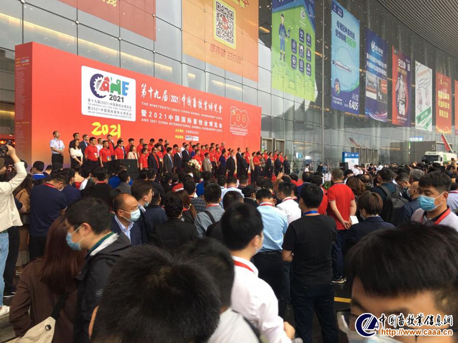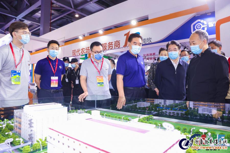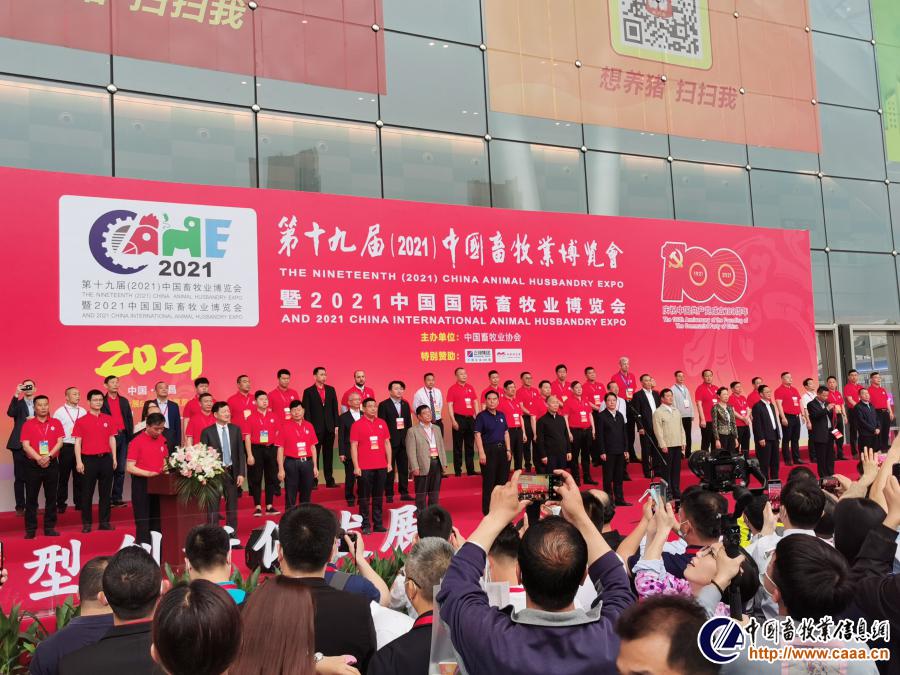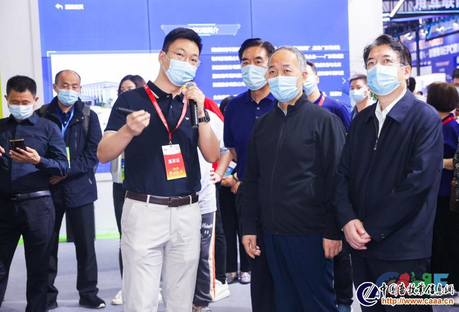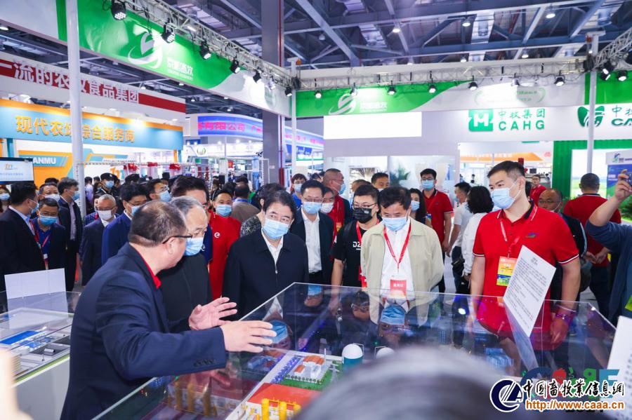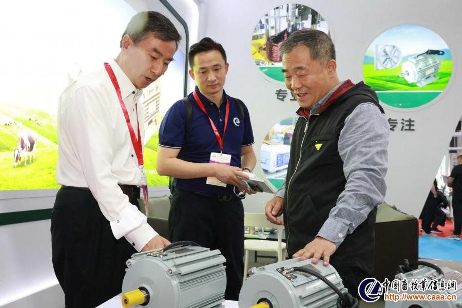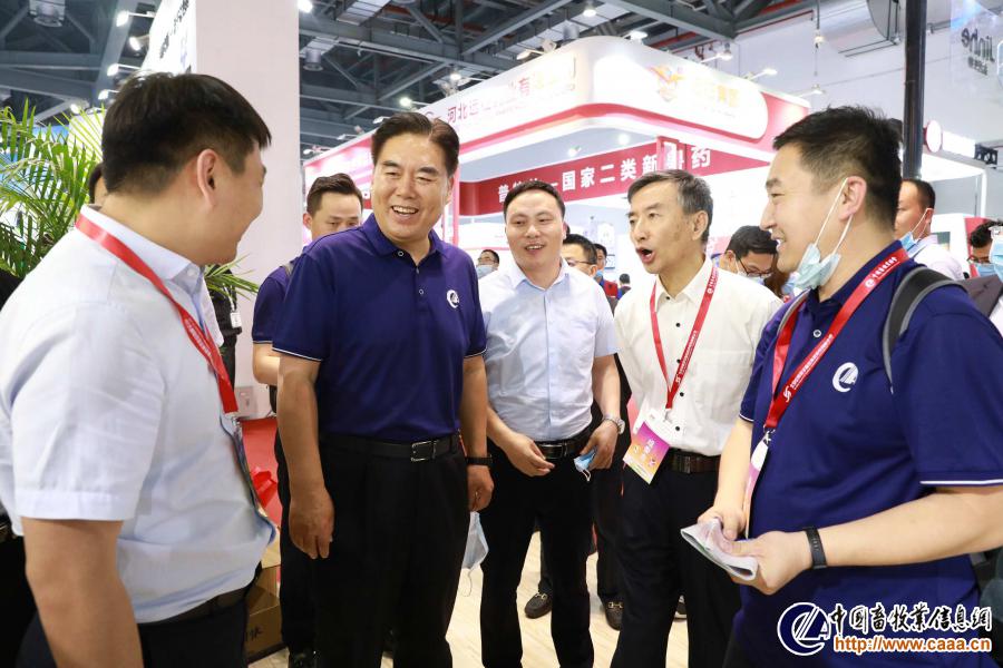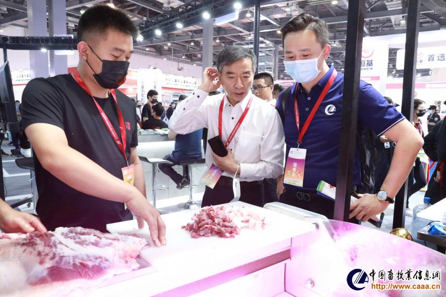 中国畜牧业协会秘书长何新天与参展企业代表交流