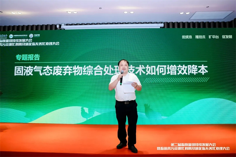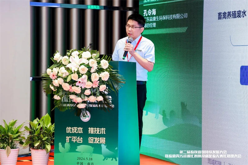 孔令海经理分享了《畜禽养殖废水总氮提级达标解决方案》的报告。报告围绕畜禽养殖污水总氮提级达标问题,通过对总氮去除技术分析论述,及成功项目案例分享,从源头减量、生化过程强化、末端深度脱氮、智慧稳定控制等技术方向,为广大养殖企业提供经验参考。