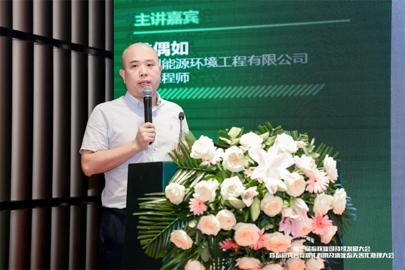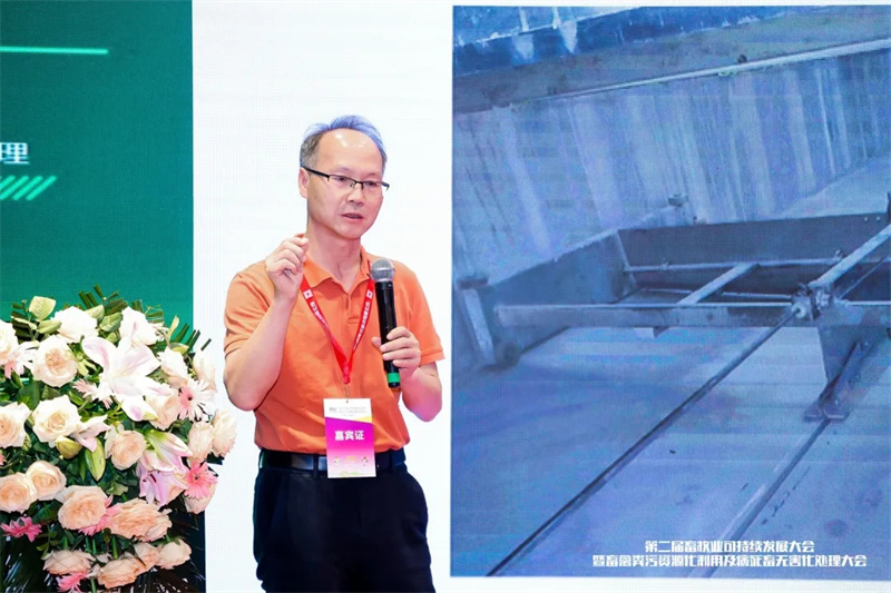 詹偶如总工程师分享了《猪场粪污减负还田综合处理整体解决方案》的报告。报告中分享猪场粪污减负还田综合处理整体解决方案,主要针对周边配套有一定消纳土地的养猪场。通过高浓粪污厌氧产沼和低浓粪水好氧达标处理相协同模式,实现沼液、沼渣和清液的还田灌溉。即能实现粪污资源化利用,又能降低粪水达标处理的运行成本。