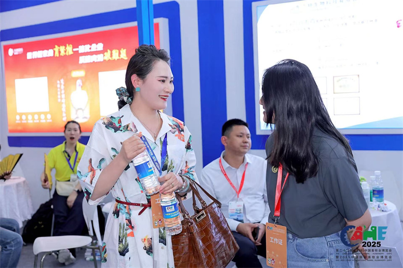 活动结束后,观摩团在协会负责人带领下,分别前往3家育种企业展示专区,与自主培育白羽肉鸡新品种育种企业进行一对一的采访交流。