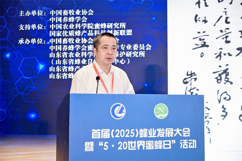 五月芳菲,蜂舞翩跹,蜜源丰茂。5月18-21日,首届(2025)蜂业发展大会在青岛举办。大会由中国畜牧业协会和中国养蜂学会共同主办,中国农业科学院蜜蜂研究所和国家优质蜂产品科技创新联盟支持,中国畜牧业协会蜂业分会、中国养蜂学会蜜蜂生物学专业委员会、山东省农业科学院植物保护研究所(山东省蜂业良种繁育中心)、山东省蜂产业技术体系、山东省蜂业协会承办,会议主题为“破解行业痛点、深化融合发展、推动转型创新、振兴特色产业”。全国畜牧总站副站长左玲玲、全国畜牧总站原总畜牧师苏红田、全国性行业协会商会第四联合党委委员、纪委书记梅建彬、中国养蜂学会理事长彭文君、山东省畜牧兽医局副局长李新、中国农业科学院蜜蜂研究所副所长吴黎明、中国农科院蜜蜂研究所副所长田文礼、中国畜牧业协会副秘书长刘强德、中国畜牧业协会副秘书长王国梁、山东省农业科学院植物保护研究所所长翟一凡、山东省蜂业协会会长周长信等出席会议。大会由中国畜牧业协会蜂业分会会长许正鼎主持。